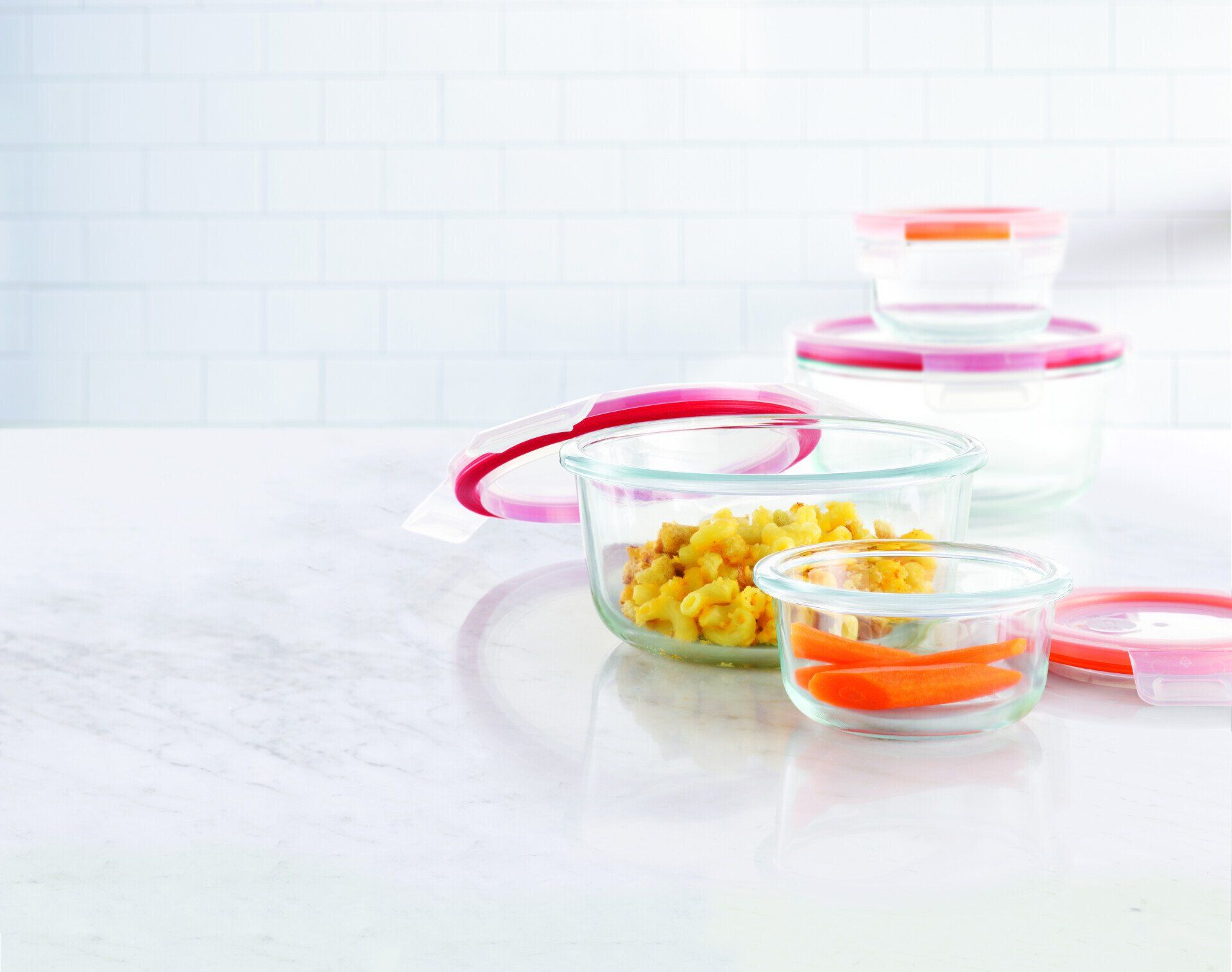 Pure Pyrex® glass containers resists stains and does not absorb food odors or flavors.
